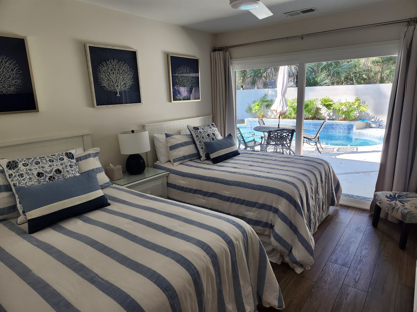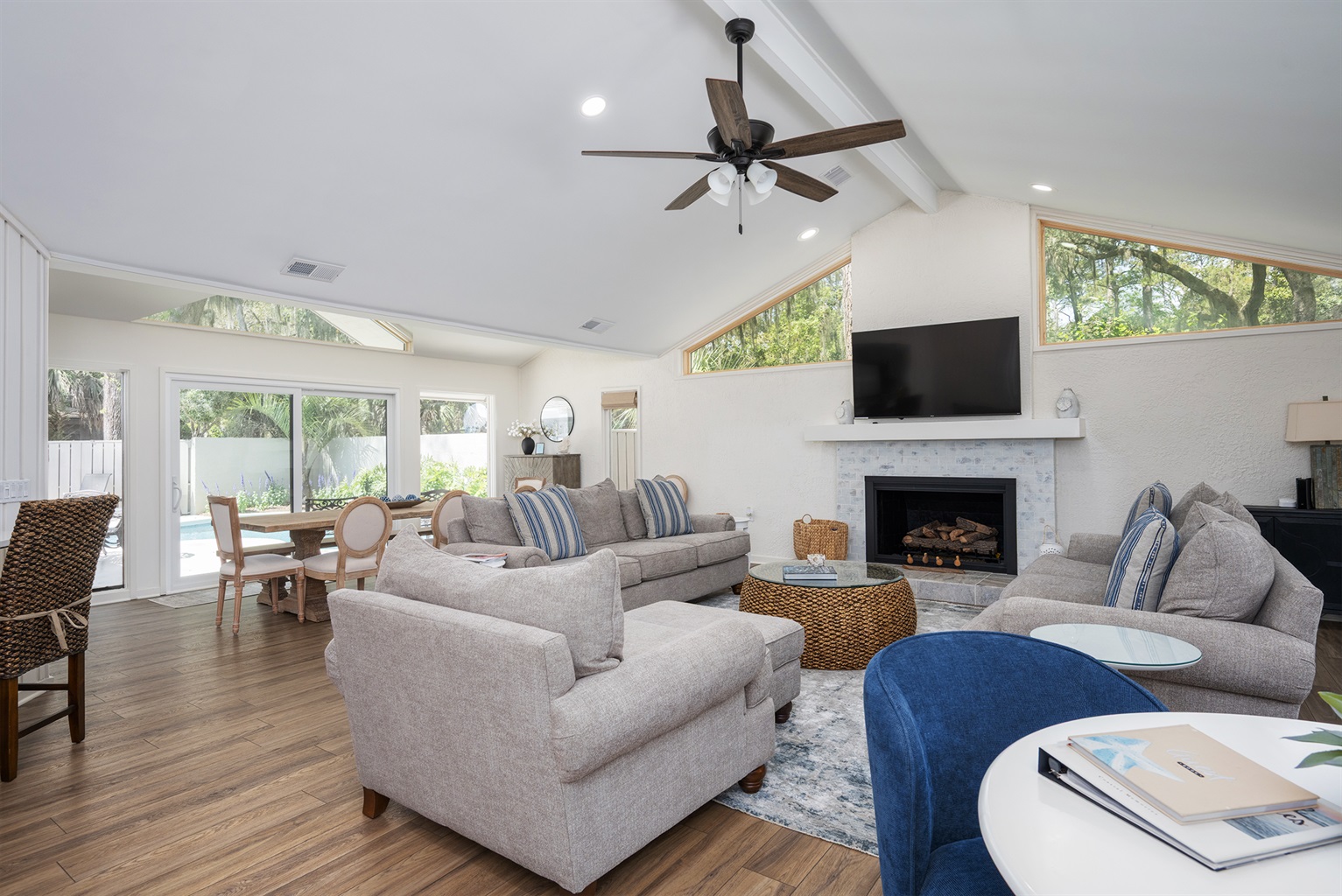 Completely remodeled in 2022, this light, bright and comfy home features open concept living and entertaining. The living, dinning, and 3 of the bedrooms provide great views and private access to the pool. The kitchen opens to the living and dinning room to keep you connected with family and guests. The home features all the modern comforts and amenities you'd expect in an executive vacation home. Come and experience luxury, comfort, and convenience. All in a fantastic location in Sea Pines!