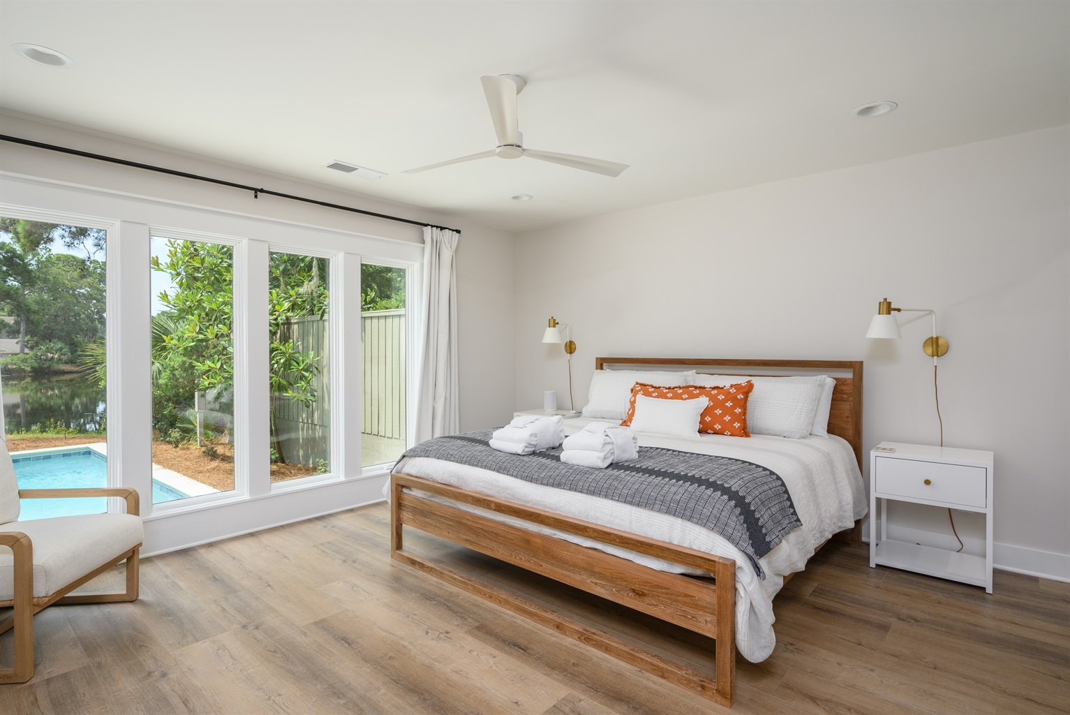 Enjoy the open floor plan from the kitchen to the family room, living room and to the pool! It's a great home for entertaining and maximizing your vacation time with friends and family. The home has been completely remodeled! It features a great breakfast bar for the kids, as well as chef grade cooking gear, cutlery, and china! The home has a wonderful centrally located living area with plenty of room for all the family to relax, both inside, as well as outside. The backyard overlooks Heritage Pond, which is a tidal lagoon fed by Baynard Cove Cay and the Calibogue Sound. It doesn't get more relaxing sitting pool side, or in the pool lounging area, with your favorite beverage. The deck and pool deck provide a tranquil space that's also great for listening to your favorite music, reading or just plain relaxing! When it's time to say goodnight retreat to your own private bedroom, all with ample closet and storage space.